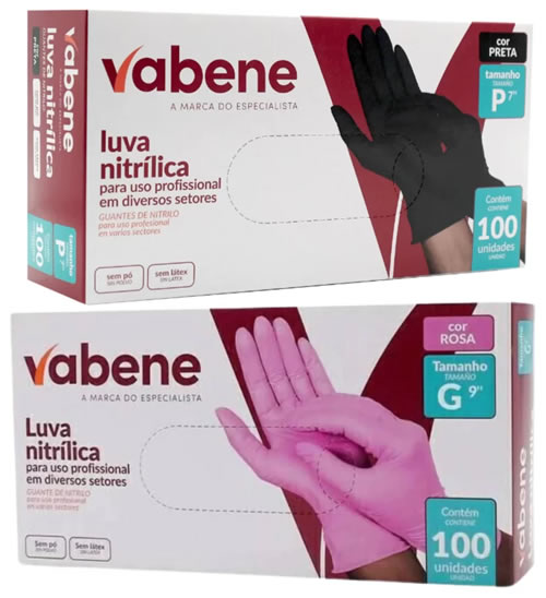 Luvas Nitrílicas Vabene – Proteção, Conforto e Alta Performance! As luvas nitrílicas Vabene são ideais para quem busca segurança, sensibilidade tátil e resistência em atividades que exigem higiene e proteção. Sem pó, hipoalergênicas e superconfortáveis, são perfeitas para uso em cozinhas, salões de beleza, clínicas, limpeza e muito mais. Alta resistência a furos e produtos químicos Conforto e ajuste perfeito às mãos Sem látex: menor risco de alergias Disponíveis em diferentes tamanhos e cores.